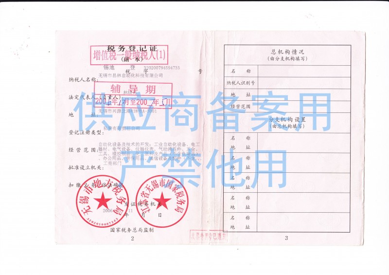 無(wú)錫市昌林自動(dòng)化科技有限公司稅務(wù)登記證(副本)
