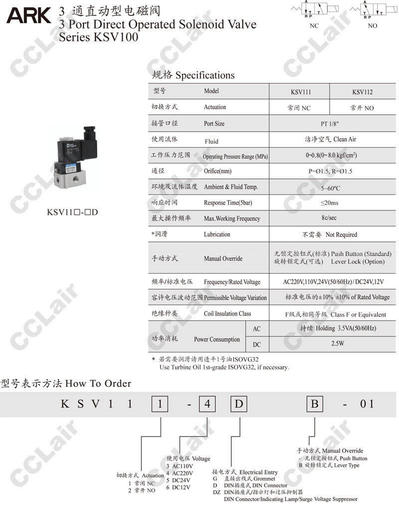 KSV111,KSV112,KSV111-3G-01,KSV111-3D-01,KSV111-3DZ-01,KSV111-4G-01,KSV111-4D-01,ARK3通直動(dòng)型電磁閥