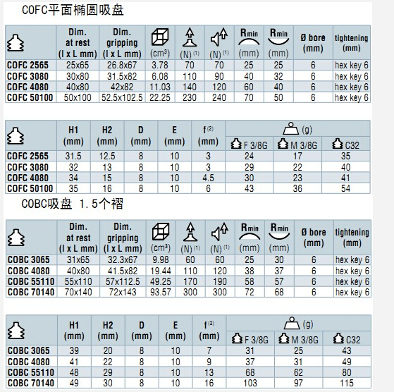 COFC2565,COFC3080,COFC4080,COFC50100,COBC3065,COBC4080,COBC55110,COBC70140,COVAL吸盤高性能吸盤