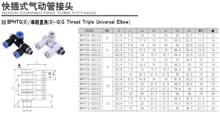 BPHT04-G01(3),BPHT06-G01(3),BPHT08-G01(3),BPHT10-G01(3),BPHT12-G02(3),快插式氣動管接頭