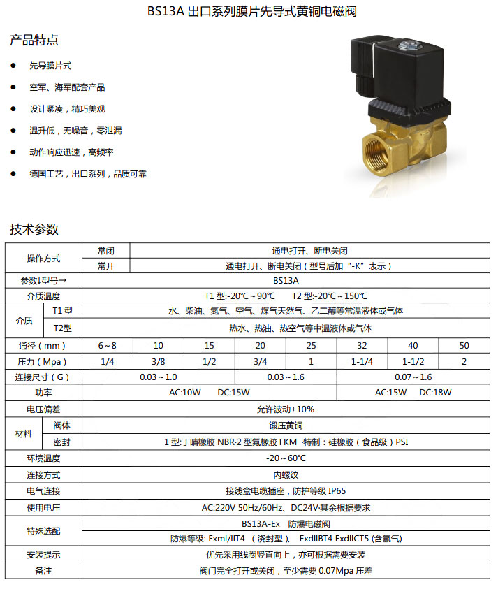 您當(dāng)前的位置:首頁 » 產(chǎn)品&解決方案 » BS13A-DN6,BS13A-DN8,BS13A-DN10,BS13A-DN15,BS13A-DN20,黃銅電磁閥