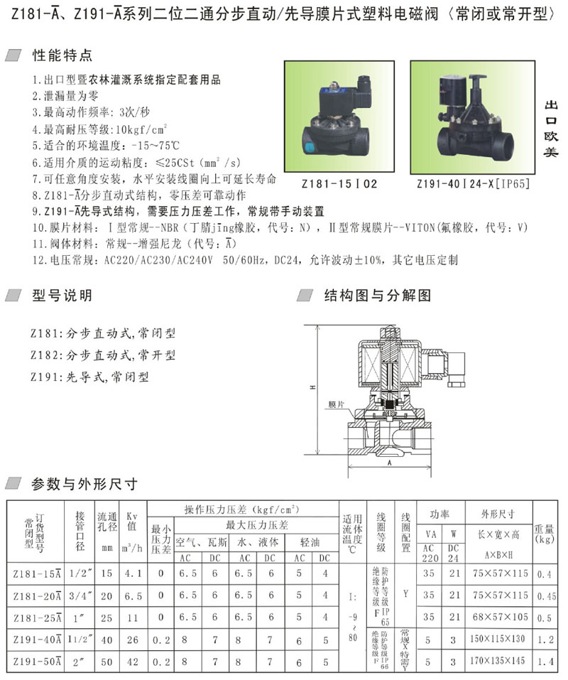 詳細(xì)信息 Z181-15,Z181-20,Z181-25,Z181-40,Z181-50,先導(dǎo)膜片式塑料電磁閥