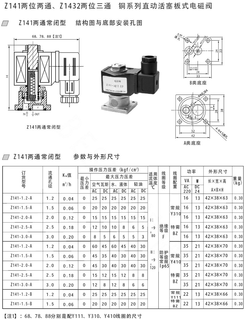 Z14321-1.2-B,Z14322-1.5-B,Z1433-1.2-B,Z141-1.2-A,Z14321-2.5-A,直動活塞板式電磁閥