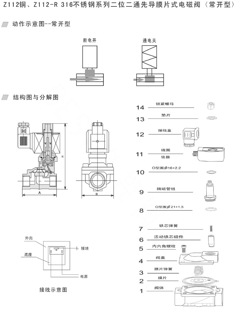 詳細(xì)信息 Z112-2.5R,Z112-03R,Z112-05R,Z112-06R,Z112-25RF,Z112-32RF,不銹鋼先導(dǎo)膜片式電磁閥