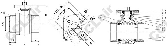 | DN | RC | L | K | SW | H | S | K1 | K2 | 黃銅球閥訂貨號(hào) |