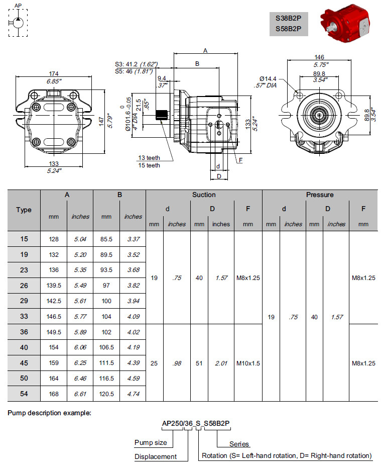 AP250/45-D-S38B2S,Bucher,AP250/50-D-S38B2S,AP250/54-D-S38B2S,