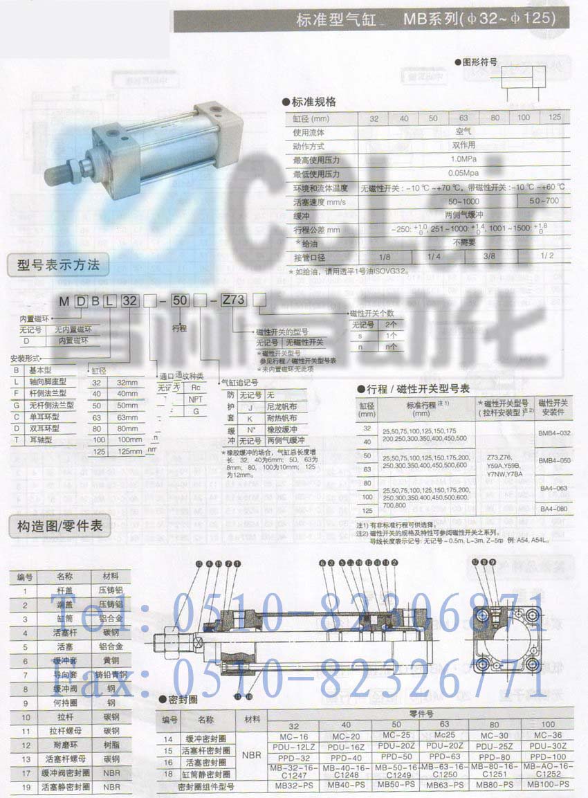 詳細信息 MBB63-200,MBB63-250,MBB63-300,MBB63-350,MBB63-400,標準型氣缸,生產廠家,價格