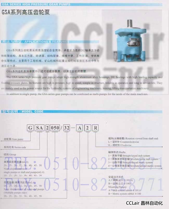 GSA2020, GSA2025, GSA2028, GSA2032, 高壓齒輪泵