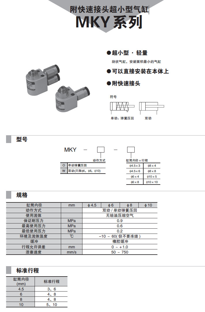 MKY-O-4.5×3,MKY-O-4.5×6,MKY-O-6×4,MKY-W-6×4,MKY-W-6×8,超小型氣缸
