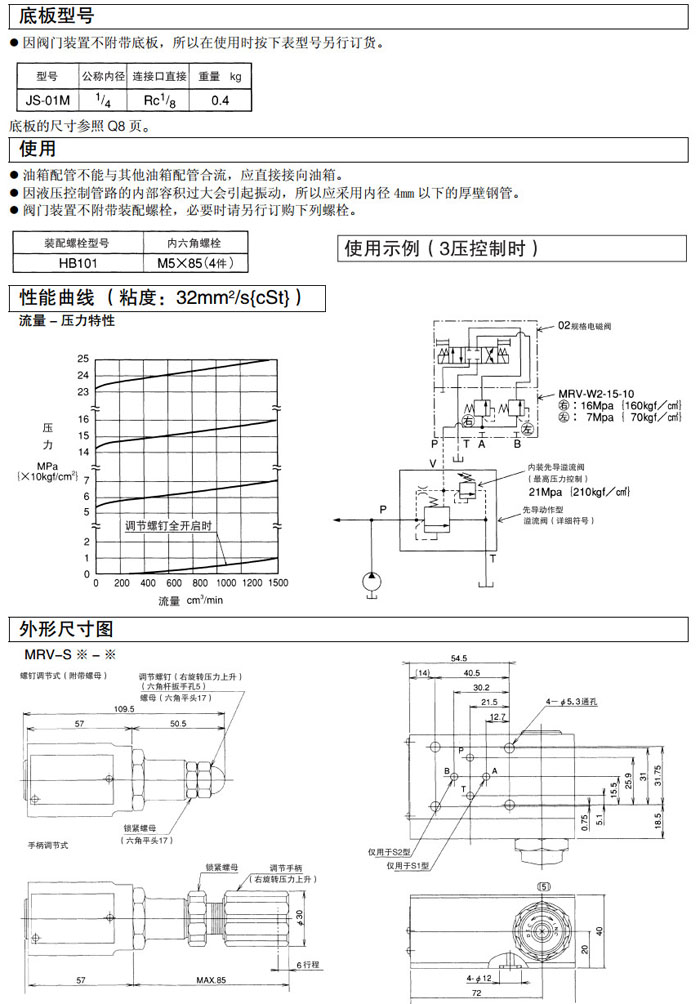 詳細(xì)信息 MRV-S1,MRV-S2,MRV-W1,MRV-W2,MRV-T,DAIKIN直動(dòng)式溢流閥
