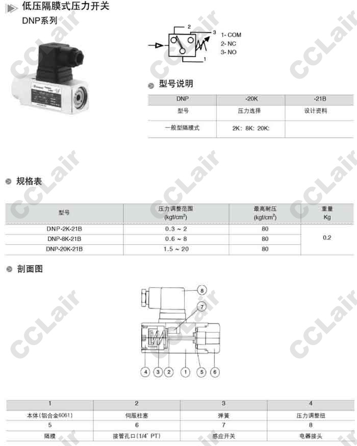 DNP-2K-21B,DNP-8K-21B,DNP-20K-21B,低壓隔膜式壓力開關(guān)