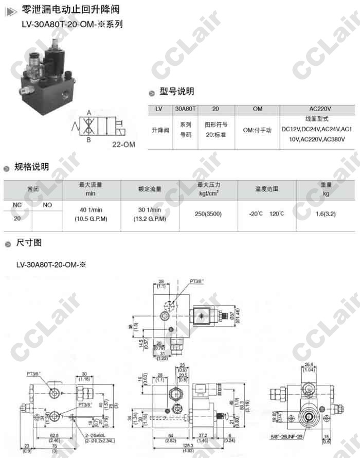 LV-30A80T-20-OM-DC12V,LV-30A80T-20-OM-DC24V,LV-30A80T-20-OM-AC24V,零泄漏電動止回升降閥