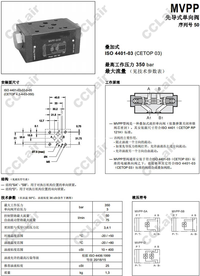 MVPP-SA/50,MVPP-SB/50,MVPP-D/50,MVPP-SA/50/V,MVPP-SB/50/V,MVPP-D/50/V,先導(dǎo)式單向閥