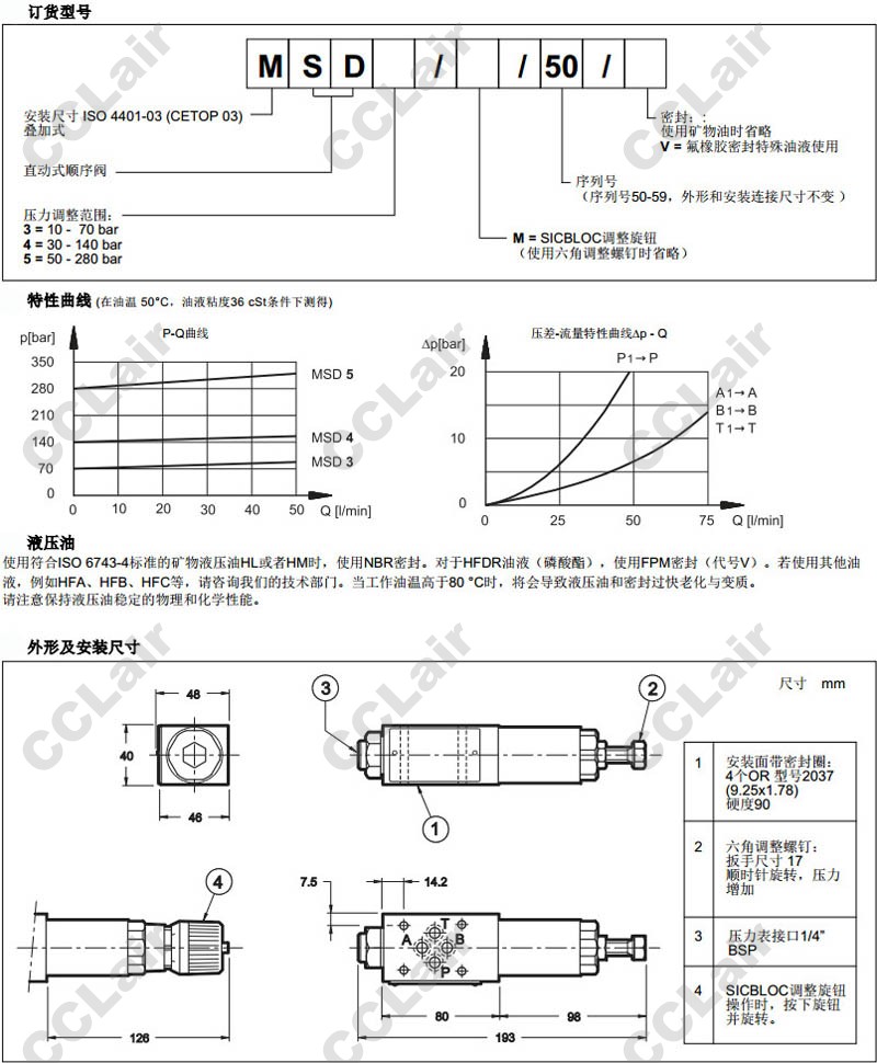 DUPLOMATIC(迪普馬),MSD3/M/50,MSD4/M/50,MSD5/M/50,MSD3/M/50/V,MSD4/M/50/V,MSD5/M/50/V,直動式順序閥