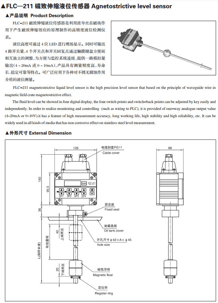 產(chǎn)品: 瀏覽次數(shù):731FLC-211,磁致伸縮液位傳感器