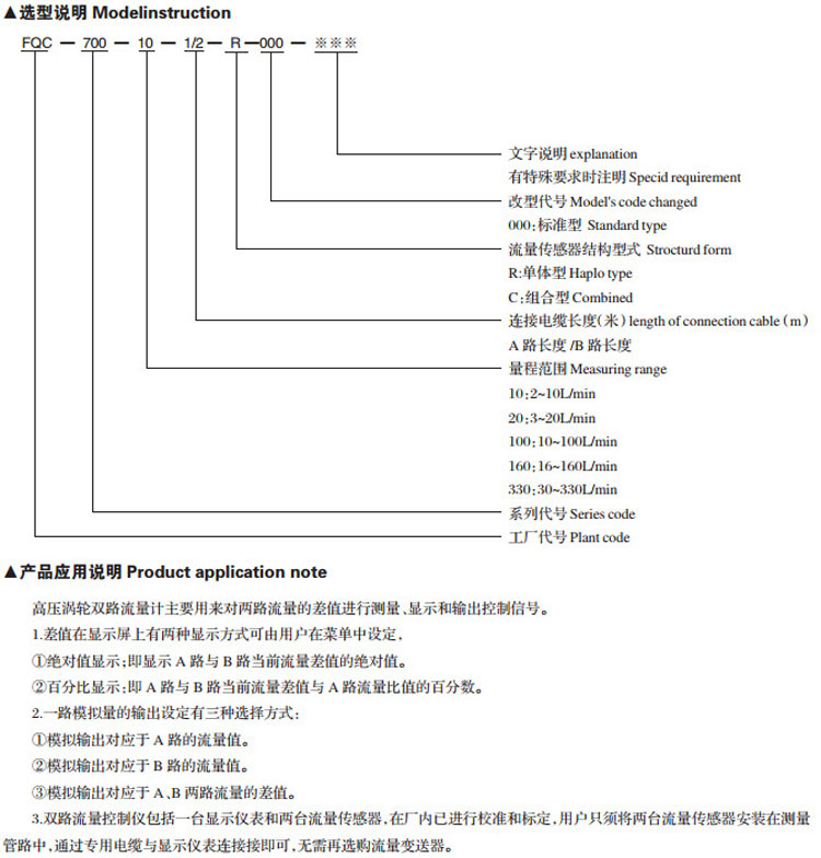 FQC-700-10,FQC-700-20,FQC-700-100,FQC-700-160,FQC-700-330,高壓渦輪雙路流量計