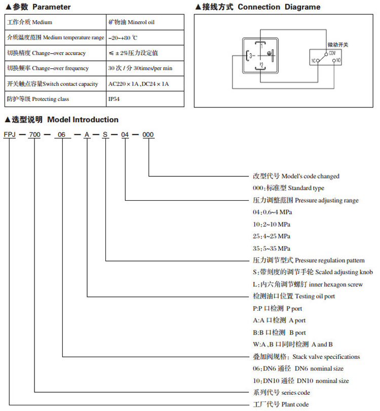 詳細信息 FPJ-700-06,FPJ-700-10,疊加式壓力繼電器