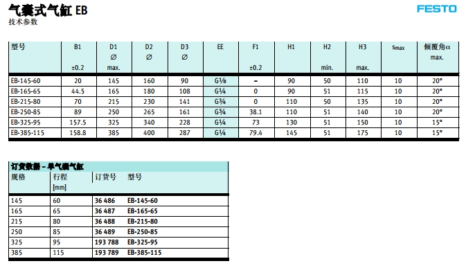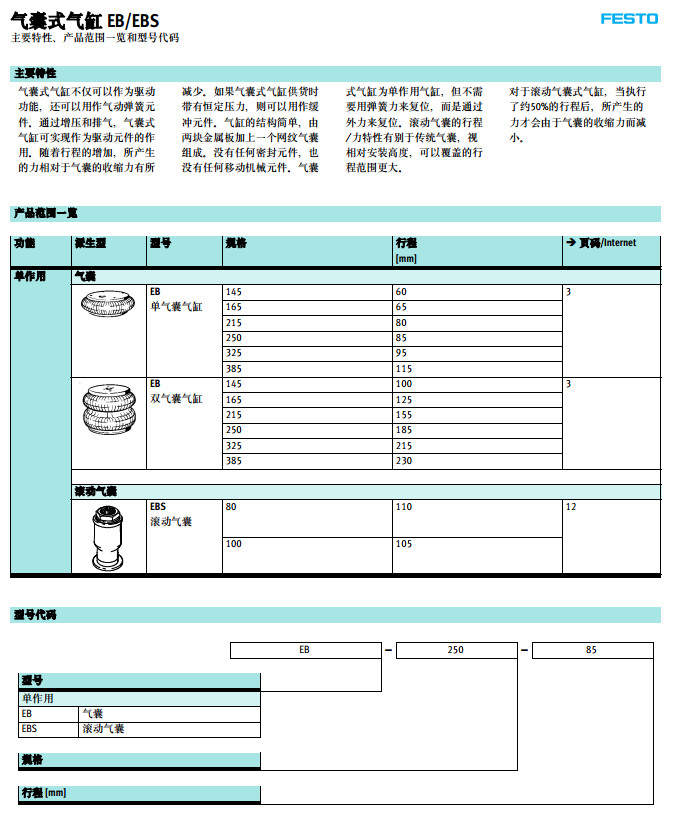 EB-145-60,EB-165-65,EB-215-80,EB-250-85,EB-325-95,EB-385-115,festo氣囊式氣缸