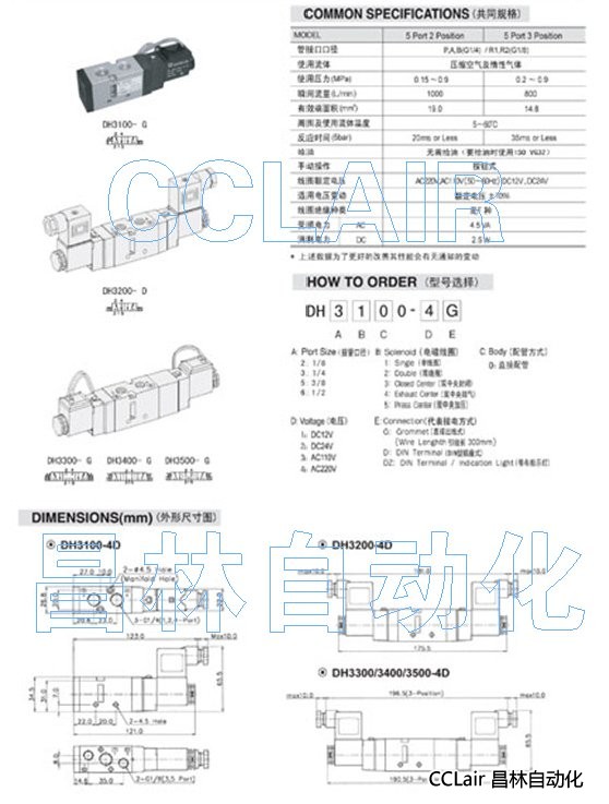 DH3100,DH3200,DH3300,DH3400,DH3500,5通先導型電磁閥