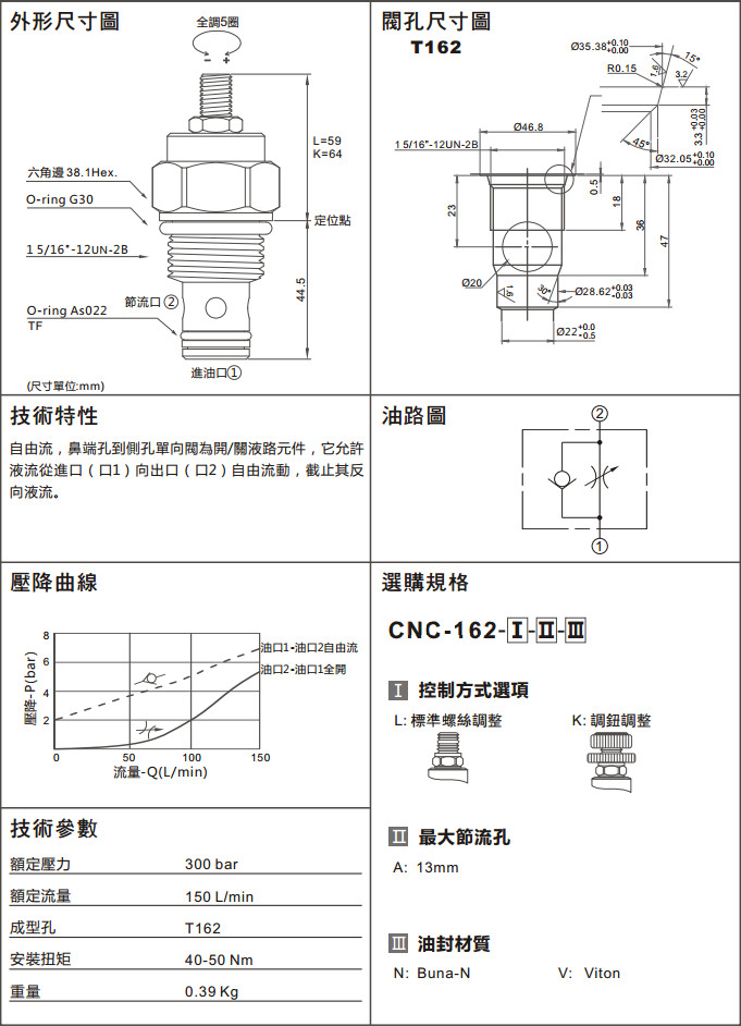 詳細信息 CNC-162-LAN,CNC-162-LAV,CNC-162-KAN,CNC-162-KAV,流量控制閥(全調型節(jié)流閥,附止回)