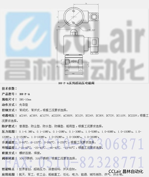 DH-P-A1,DH-P-A1.6,DH-P-A2.5,DH-P-A3,DH-P-A4,DH-P-A5,DH-P-A6,DH-P-A10,超高壓電磁閥