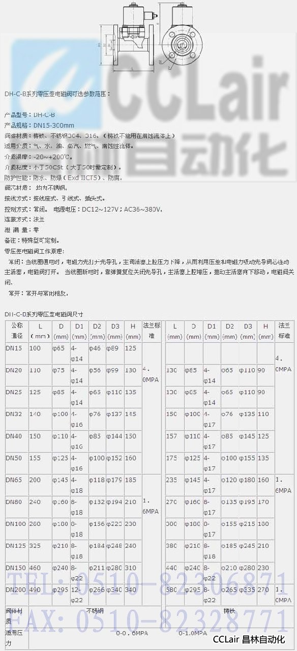 DH-C-B15,DH-C-B20,DH-C-B25,DH-C-B32,DH-C-B40,DH-C-B50,零壓差電磁閥