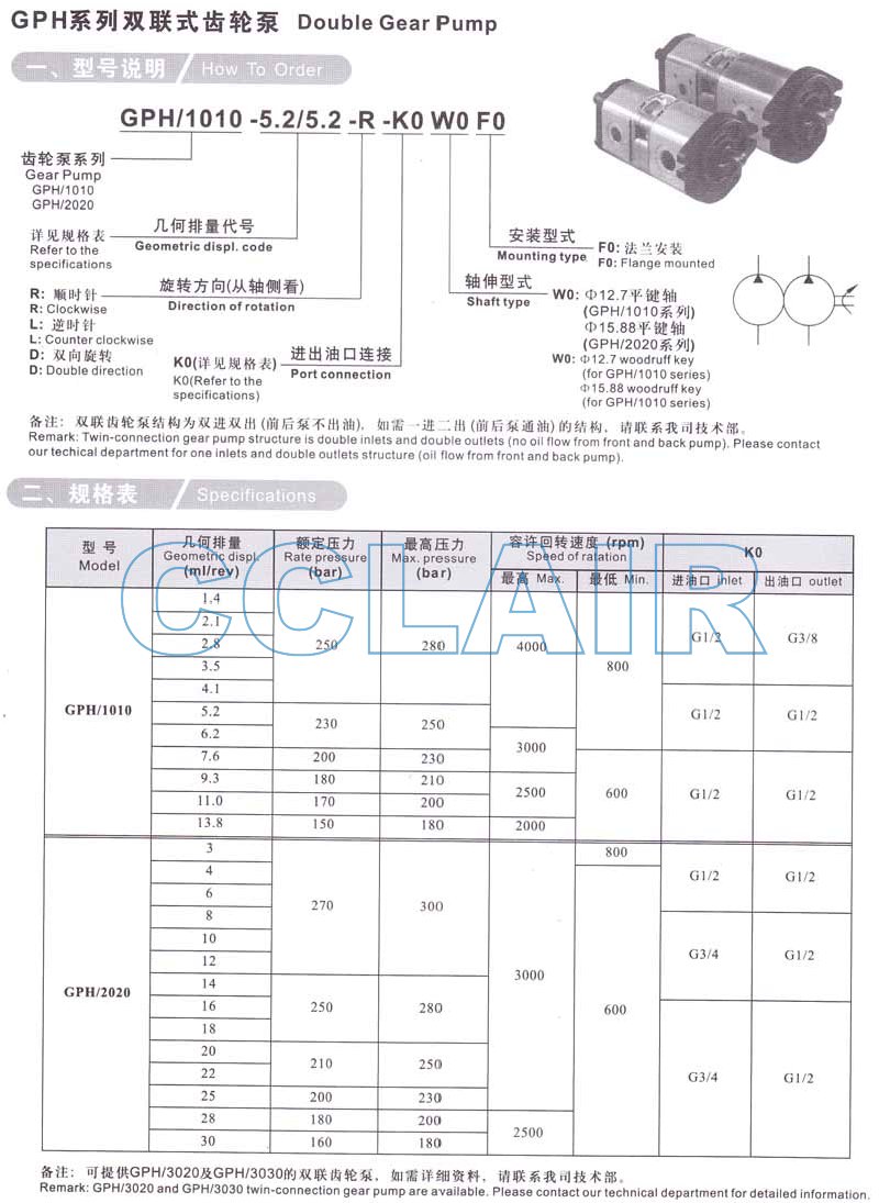 GPH/1010,GPH/2020,GPH/1010-5.2/5.2-R-K0W0F0,GPH/1010-1.4/1.4-R-K0W0F0,雙聯(lián)式齒輪泵