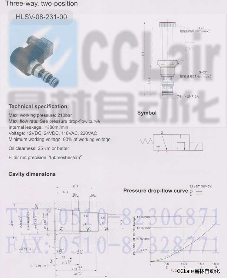 產(chǎn)品: 瀏覽次數(shù):574HLSV-08-231-00,二位三通電磁閥