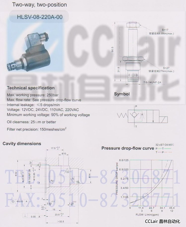 產(chǎn)品: 瀏覽次數(shù):672HLSV-08-220A-00,二位二通電磁閥