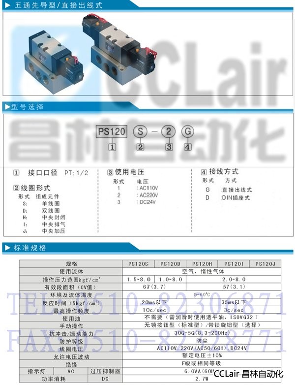 詳細(xì)信息 PS120S,PS120D,PS120H,PS120I,PS120J,五通先導(dǎo)型電磁閥
