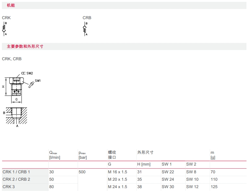 詳細(xì)信息 CRK1-1/4,CRB1-1/4,CRK2-1/4,CRB2-1/4,CRK3-1/4,單向閥