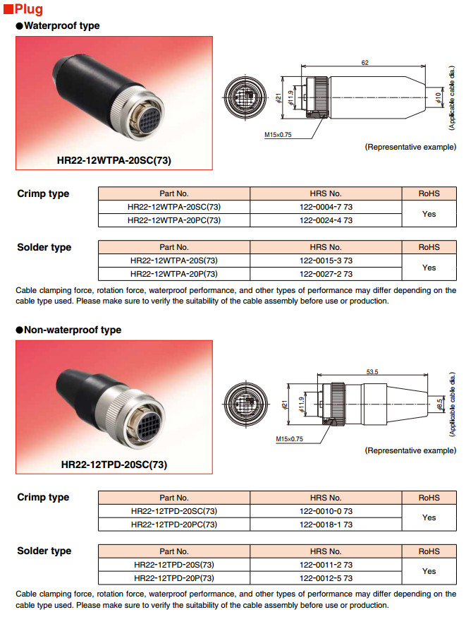 JR13WCC-9,JR13WCC-10,HR22-12WTRA-20SC,hirose,HR22-12WTRA-20PC,HR22-12WTRA-20S,