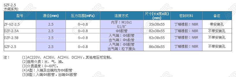 詳細信息 SZF-VZ-2.5,ZF-VZ-2.5,DZF-VZ-2.5A,DZF-VZ-2.5B,焊機專用電磁閥