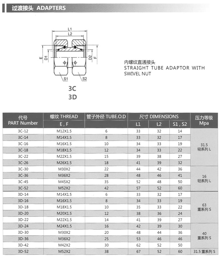詳細信息 3D-14,3D-16,3D-18,3D-20,3D-22,3C-26,3C-30,3C-36,3C-45,3C-52,內(nèi)螺紋直通接頭 3D-24,3D-30,3D-36,3D-42,3D-52,3C-12,3C-14,3C-16,3C-18,3C-22,