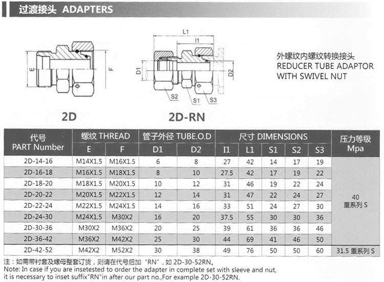 2D-14-16,2D-16-18,2D-18-20,2D-20-22,2D-22-24,2D-24-30,2D-30-36,2D-36-42,2D-42-52,轉(zhuǎn)換接頭