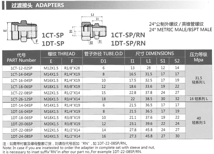 詳細信息 1CT-12-02SP,1CT-14-04SP,1CT-16-04SP,1DT-20-06SP,1DT-22-08SP,1DT-24-08SP,過渡接頭