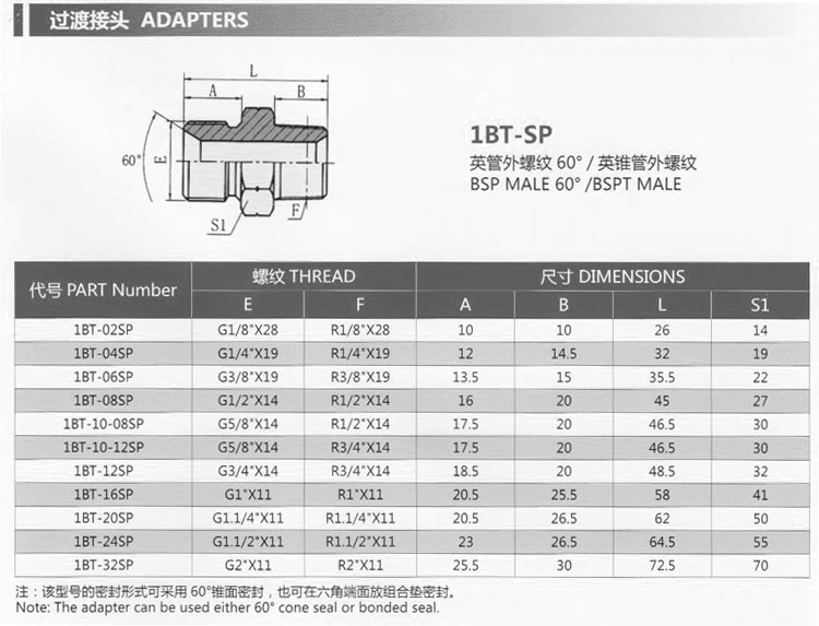 詳細信息 1BT-02SP,1BT-04SP,1BT-06SP,1BT-08SP,1BT-10-08SP,1BT-12SP,1BT-16SP,1BT-24SP,1BT-32SP,過渡接頭