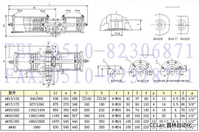 AW系列雙作用氣動(dòng)執(zhí)行器輸出扭矩表,單位:N.m