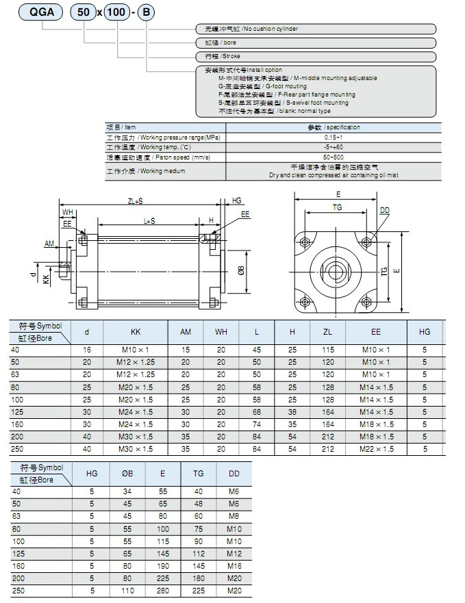 詳細(xì)信息 QGA40×100,QGA50×100,QGA63×100,QGA80×100,QGA100×100,QGA125×100,QGA160×100,QGA200×100,QGA250×100,可調(diào)緩沖氣缸