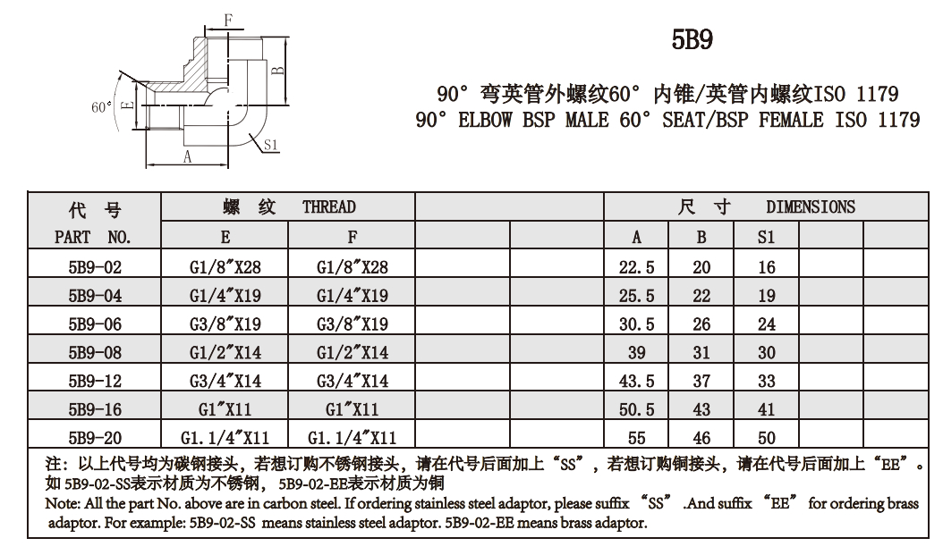 5B9-02,5B9-04,5B9-06,5B9-08,5B9-12,5B9-16,5B9-20,內(nèi)螺紋接頭