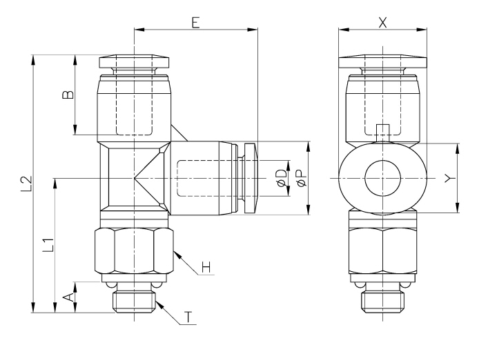 | Model | ∅D | ∅P | T | L1 | L2 | E | A | B | H(Hex) | X | Y | ORIFICE | WEIGHT(g) | BOX(EA) |