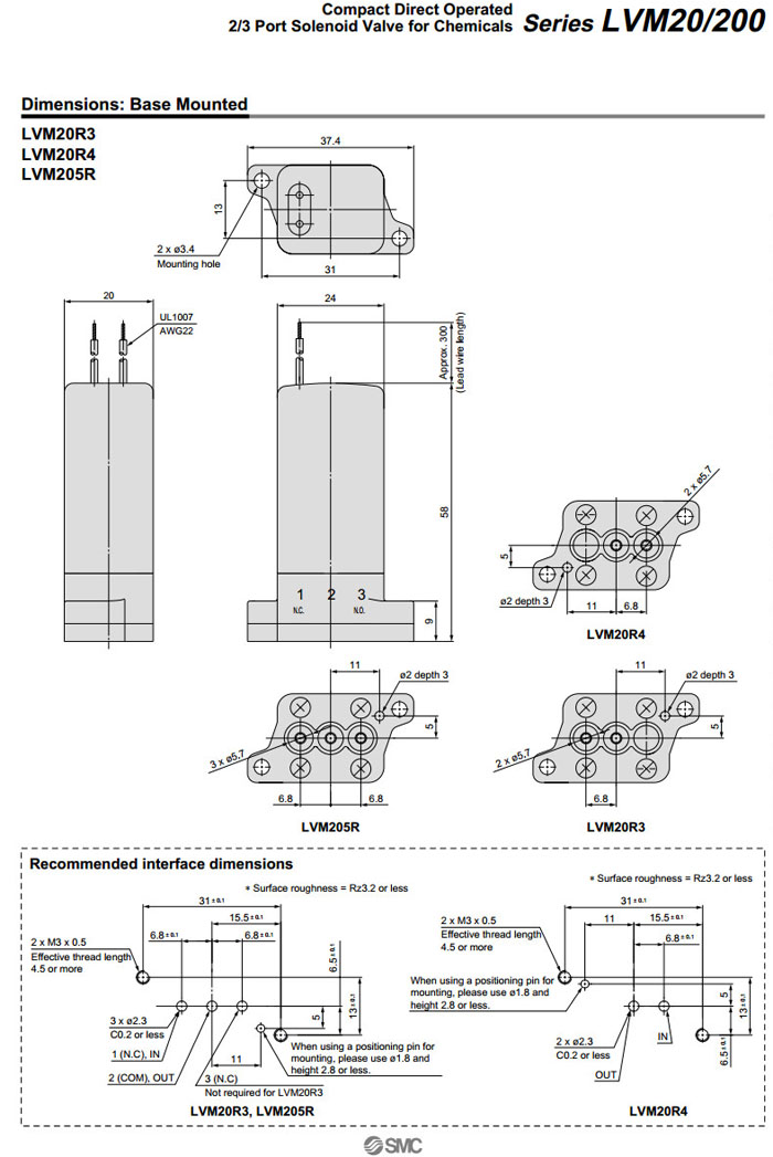 詳細信息 LVM20R3-5A,LVM20R3-6A,LVM20R4-5A,LVM20R4-6A,LVM205R-5A,LVM205R-6A,SMC直動式2/3通電磁閥