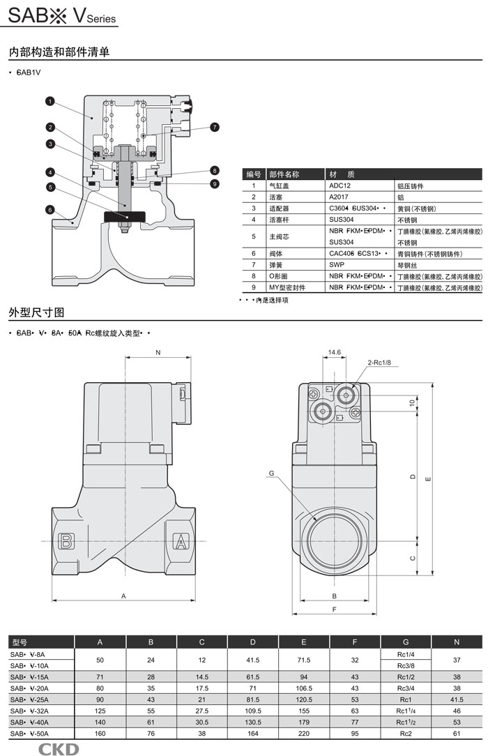 SAB2V-32A,SAB2V-32F,SAB2V-40A,SAB2V-40F,SAB2V-50A,SAB2V-50F,SAB3V-8A,SAB3V-10A,CKD氣控式2通閥