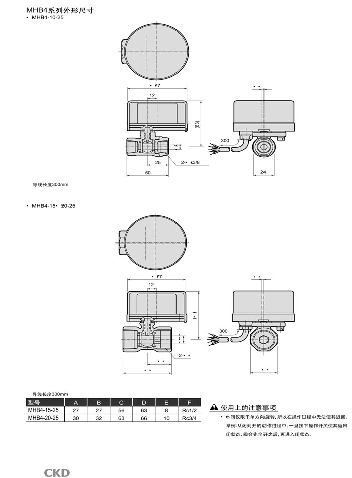 MHB4-10-25,MHB4-15-25,MHB4-20-25,MHG4-10-25,MHG4-15-25,MHG4-20-25,CKD電動(dòng)式球閥2·3通電磁閥