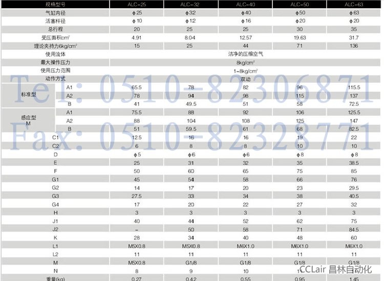 ALC-25,ALC-32,ALC-40,ALC-50,ALC-63,杠桿式冶具氣缸