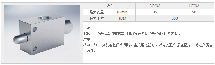 產品: 瀏覽次數:4343HYV-101 3/8" NA,HYV-121 1/2" NA,按鈕式阻斷閥