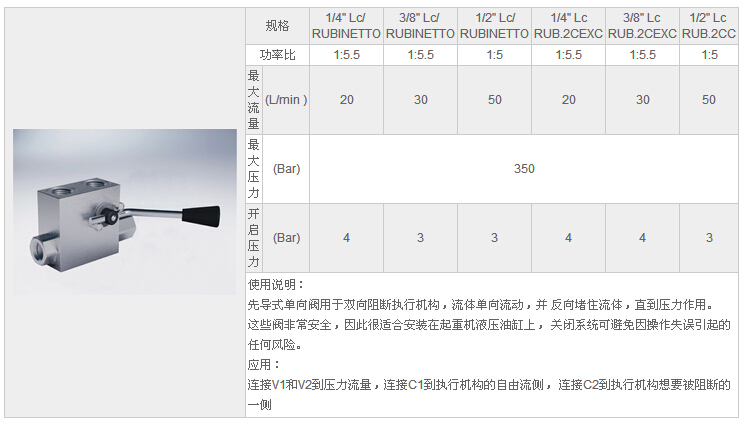 詳細信息 HYVBPSE 1/4" Lc/RUBINETTO,HYVBPSE 3/8" Lc/RUBINETTO,HYVBPSE 1/2" Lc/RUB.2 CC,單先導(dǎo)式單向閥