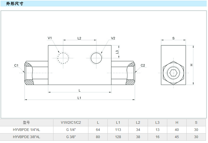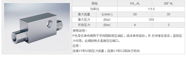 詳細(xì)信息 HYVBPDE 1/4"AL,HYVBPDE 3/8"AL,先導(dǎo)式雙單向閥