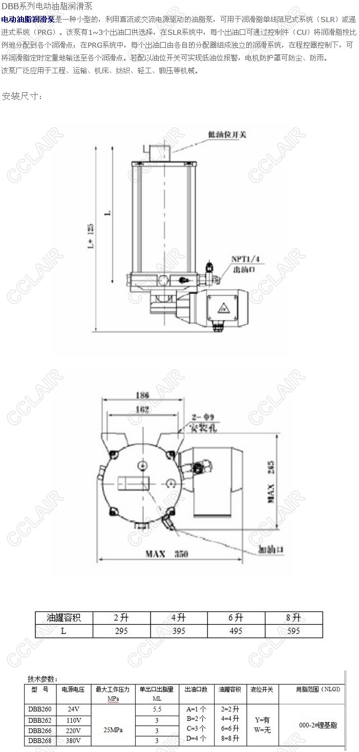 DBB260,DBB262,DBB266,DBB268,電動(dòng)油脂潤(rùn)滑泵