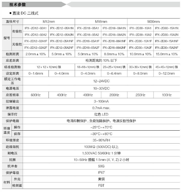 詳細信息 IPX-D12-06E1N,IPX-D18-08E1N,IPX-D30-10E1,IPX-2D12-02A1F,IPX-2D18-08A1NF,Koino圓柱形接近開關(guān)